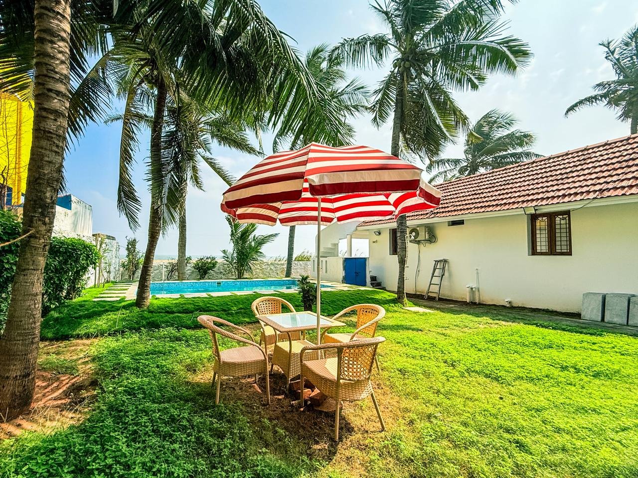 The property boasts a spacious lawn and a cozy outside sitting area, making it the perfect spot for pleasant parties under the stars or a quiet morning coffee by the sea. Whether you want to take a dip in your private pool or walk directly onto the sands of Kovalam, Casa Bay offers an unforgettable experience