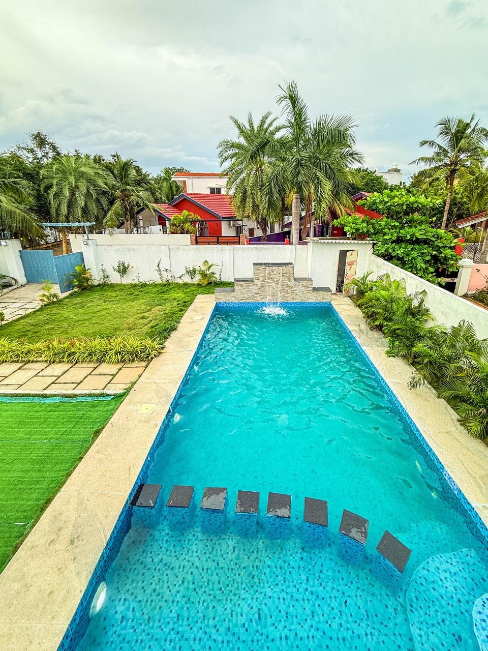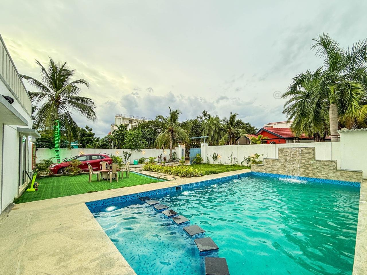 - Waterfall Swimming Pool: Dive into luxury! Our stunning pool features a built-in waterfall feature, creating a resort-style ambiance right in your backyard.